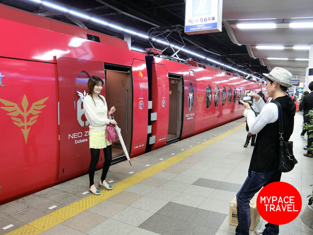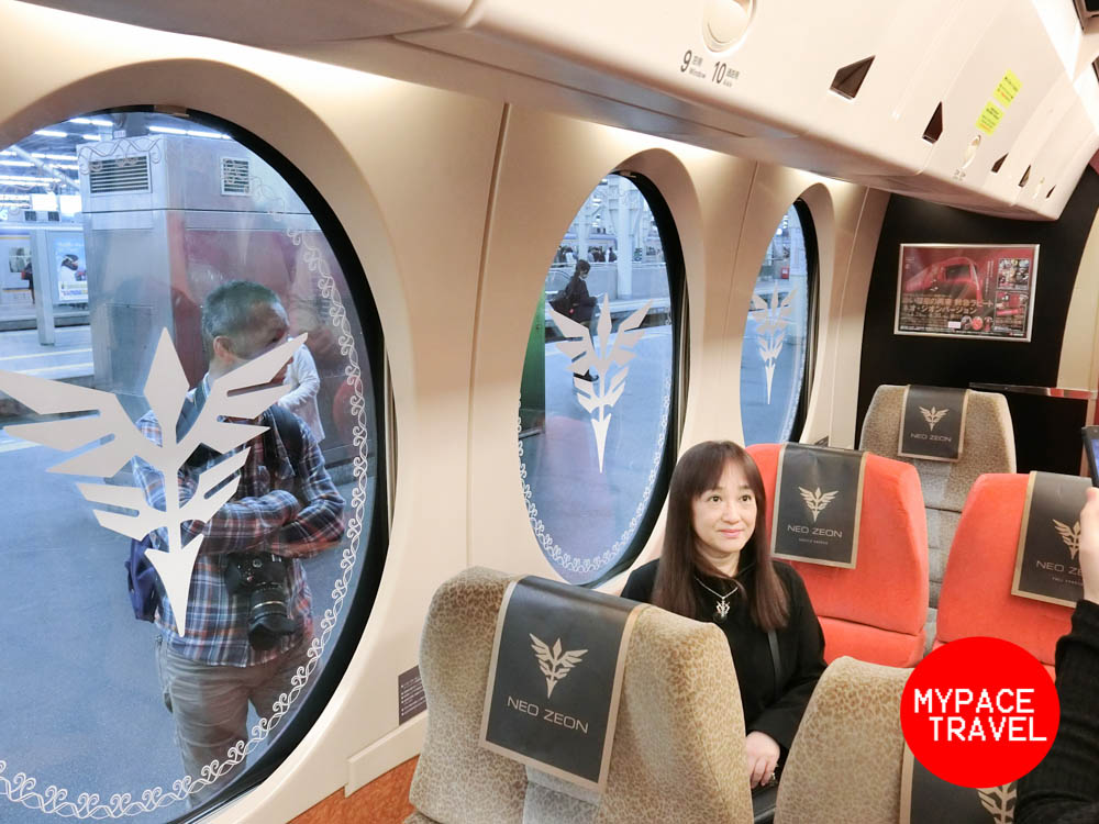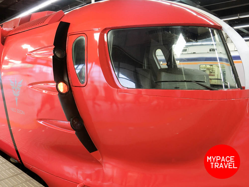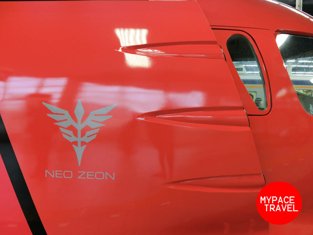 現時這架「紅彗星」電車是只此一架,其實就是由原版藍色的「特急ラピート」改裝而成,主要就是由藍色的外裝變身紅身,而車廂内跟外部也加入了一些高達主題的裝飾,而重點就是放置在SUPER SEAT範圍内的特別配色座椅了。