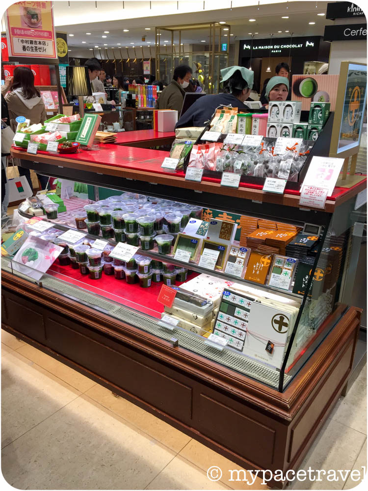 最後的溫馨提示,如果連京都也沒時間去,還可以去大阪的阪急梅田百貨店,這裡也有中村藤吉的專門店,店子不大,只是售賣抺茶商品而沒有茶室也沒有軟雪糕賣的,但啫喱跟海綿蛋糕等也有,個人建議是可以作為購買中村藤吉手信的最後補貨點啦。