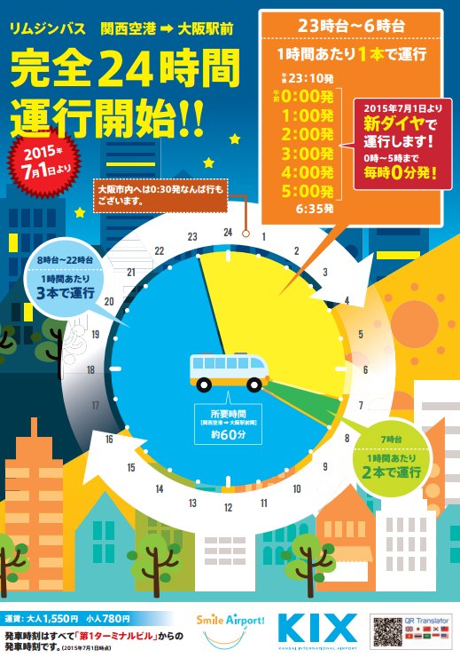 Read more about 關西機場往市區的機場巴士,15年7月1日起,真正24小時運作啦,凌晨也有每小時一班! …