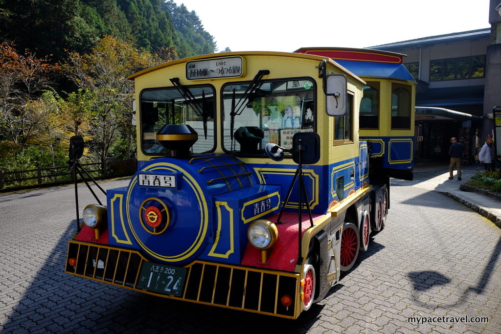 現時全日本唯一在道路上定期行駛的機關車型分割式巴士,以火車做造型也很有趣,該車是往來武蔵五日市駅及つるつる温泉之間,每天也會運行,大概往來5至6班次左右。