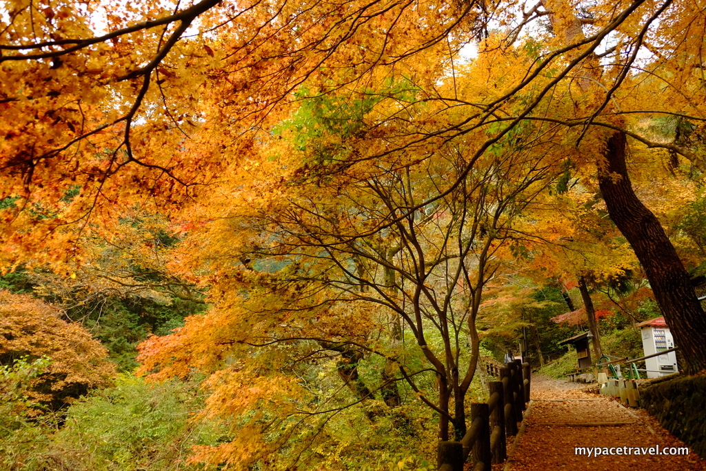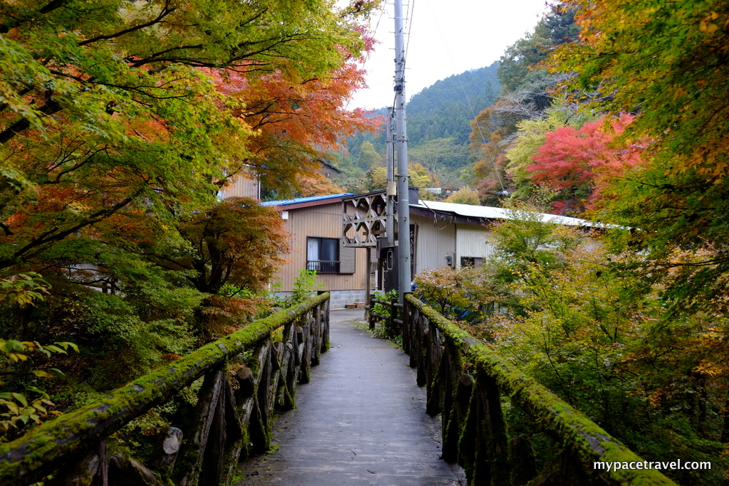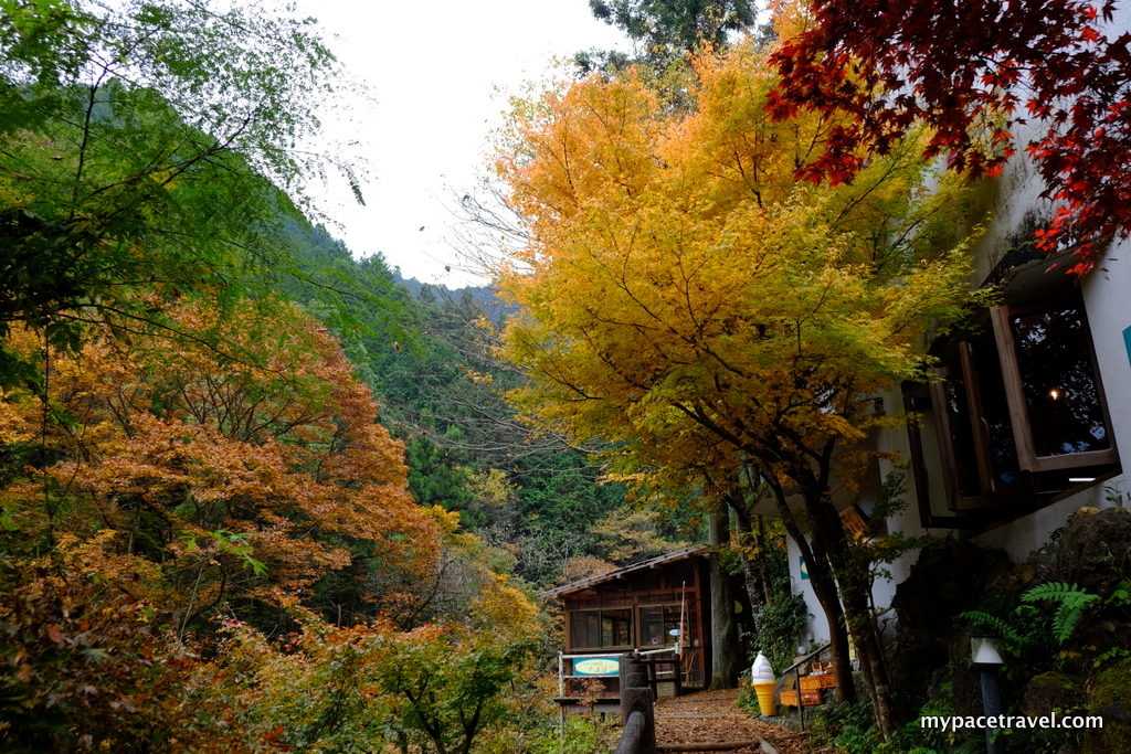 要看瀑布,可在「払沢の滝入口」下車,再沿步道行15分鐘便到,不難行的,而且如果在秋天紅葉期來的話,沿途可以看到不少美美的紅葉啊。