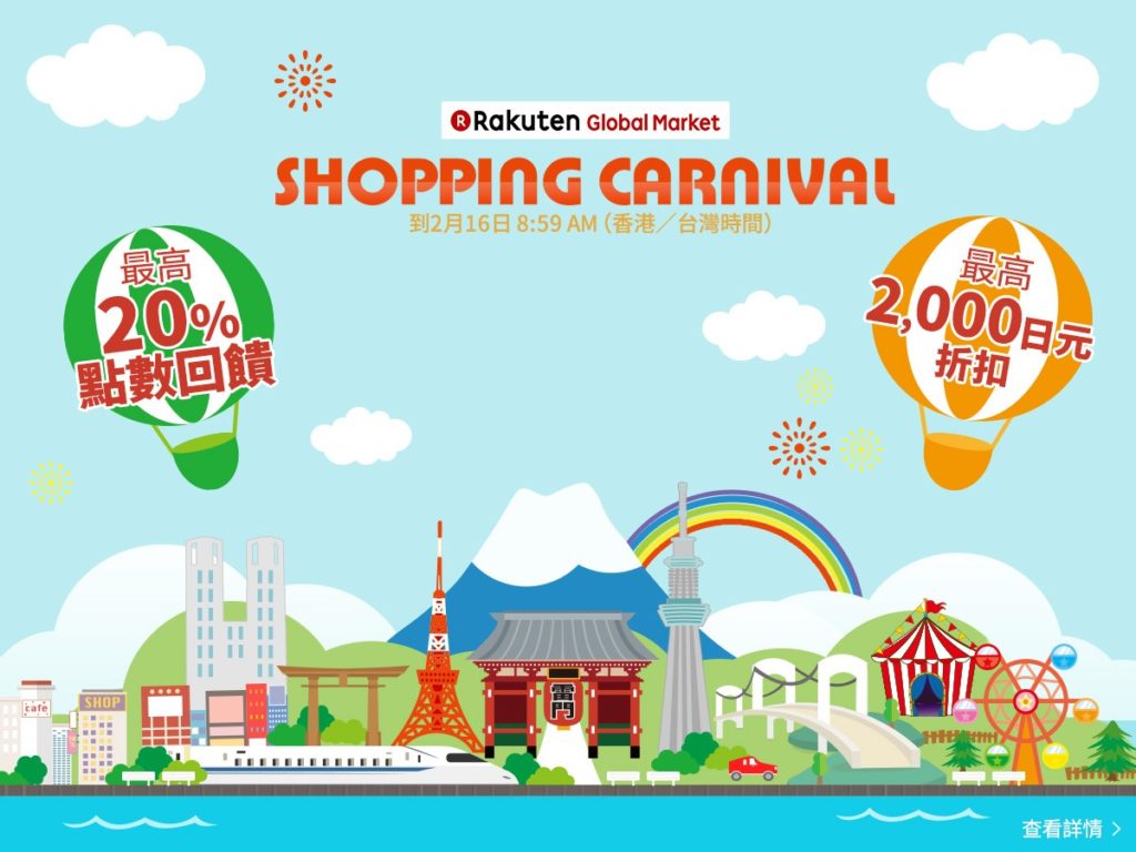 日本樂天市場(Rakuten Global Market)大型優惠活動 – Shopping Carnival開始啦。