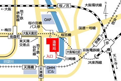 - JR東西線「大阪城北詰」駅(3号出口)下車徒歩約15分