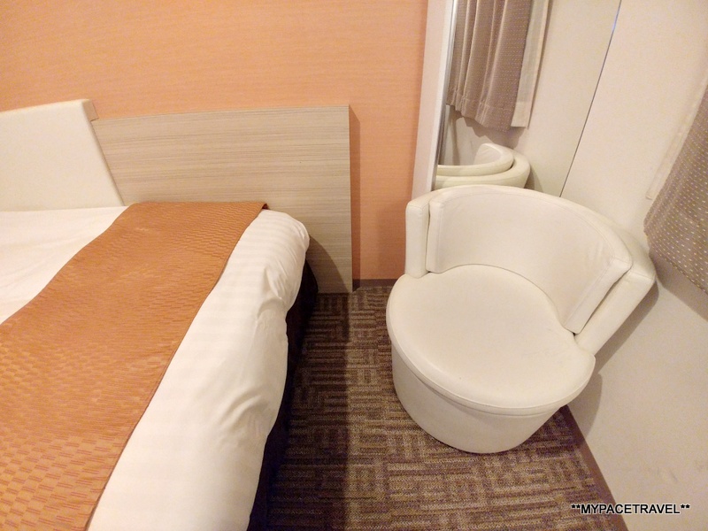 面積不大,想當然是沒有設置衣櫃,走道及窗前的空間還算不少,而且竟然還可以放置到一張小小的單人沙發呢。床鋪舒服、獨立冷氣也夠冷夠凍、也有空氣清新機、床頭也有充電插頭、免費WIFI速度OK、浴室雖然基本但還算夠大……要求不高但求一宿的話,這單人房,足夠有餘了。