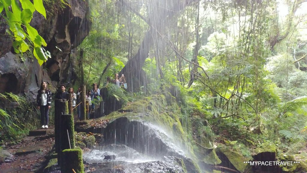 【裏見ヶ滝】是八丈島南側主要的自然觀光景點之一,賣點就是可以沿步道走進瀑布的下方,水量足夠的日子,感覺是真的很壯觀的。留意由入口前往,大概要徒步10分鐘才能到,一來一回大概預算為30分鐘左右。
