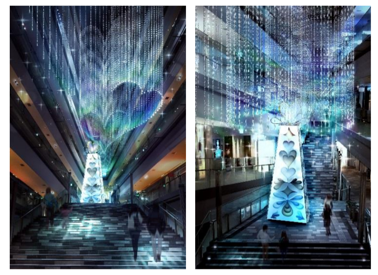 表參道山的冬日燈飾以室內部分中庭大階段為主,今年是以心型做主題,而且設計及用色非常創新,是非一般的冬日燈飾,由於是室內的關係,所以是全日也可以點燈,而且還會有每20分鐘一次的定時燈光演出。