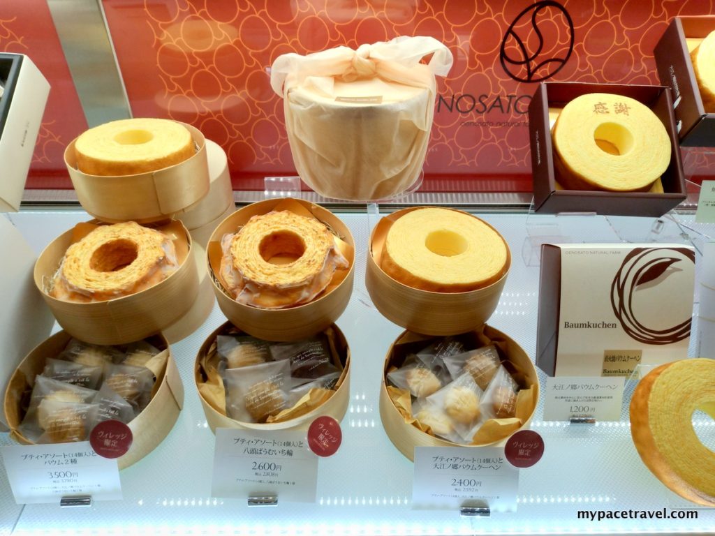 而另一座就是樓高兩層的大型主建築「大江ノ郷ヴィレッジ(大江ノ郷VILLAGE)」。一入門口的地下部分是售賣部,包括小型CAFE、售賣各式糕點及麵包的櫃位、年輪蛋糕專櫃及製作展示區、售賣「天美卵」及相關產品的專櫃等,再往入走就是體驗教室,每日也有年輪製作體驗,位每位收費2,400円,任何人士也可參加,另外周六及周日都有不同的糕點製作體驗,主要供小朋友參加,以上活動全部必須先預約。