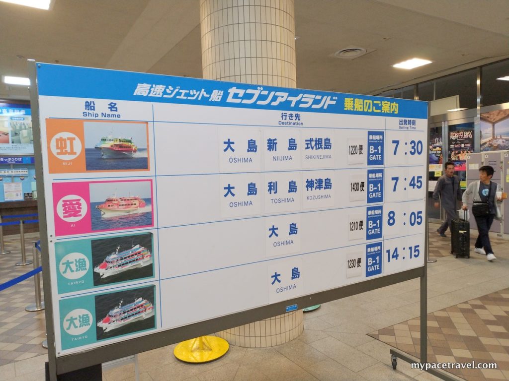 現時營運竹芝往來大島線的定期航班是東海汽船,班次視季節而定,通常約為每日2至3班左右,上午及下午各至少1班,而航程則大概是2小時以內(部分航班有中途站),船費單程6,380円,比乘坐飛機的便宜一點,但就沒有行李限制,各有各好就是了,而我這次就是東京坐船到大島,再有大島坐飛機回東京這樣的玩法。※大島也屬於東京。