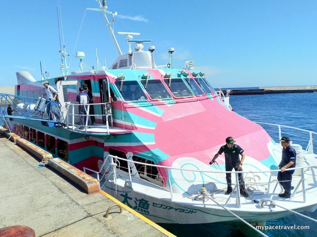 這㮔是東海汽船主力使用的高速船ジェット船,兩層式設計,使用的是新銳Hydrofoil水翼船技術,不單航速快,而且十分穩定,個人認為比香港往來澳門的同類水翼船還要舒適啊。