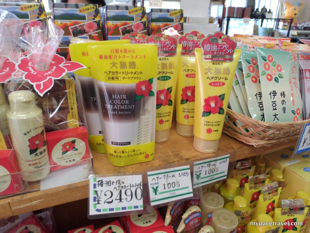 島上居民主要以務農及從事漁魚為主,而島上最出名的物產(就是必買手信啦),相信就是樁花(山茶花ツバキ)了,而島上的椿花製品品牌「大島樁」,相信大家也應該聽過吧。由於氣候的關係,伊豆大島及鄰近的利島,是全日本最適合大規模種植椿花的地方,現時單計伊豆大島,野生及種植的樁花樹數目便達300萬株以上,每年利用這些樁花製作的椿花油等製品極多,而且不單行銷日本國內,海外也可以買到,而且口碑非常不錯,主要就是具有極佳的潤膚作用喔。