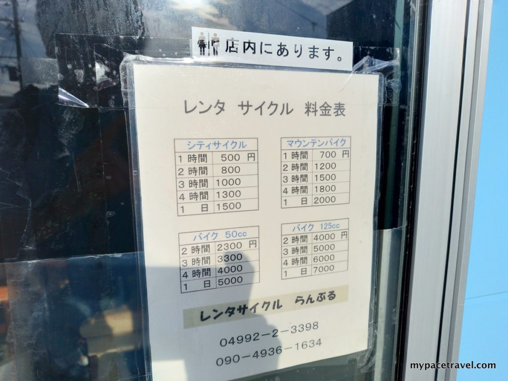 單車租金由1小時500円起,不貴,而且通常不用押金,租車時付清租金便可以。