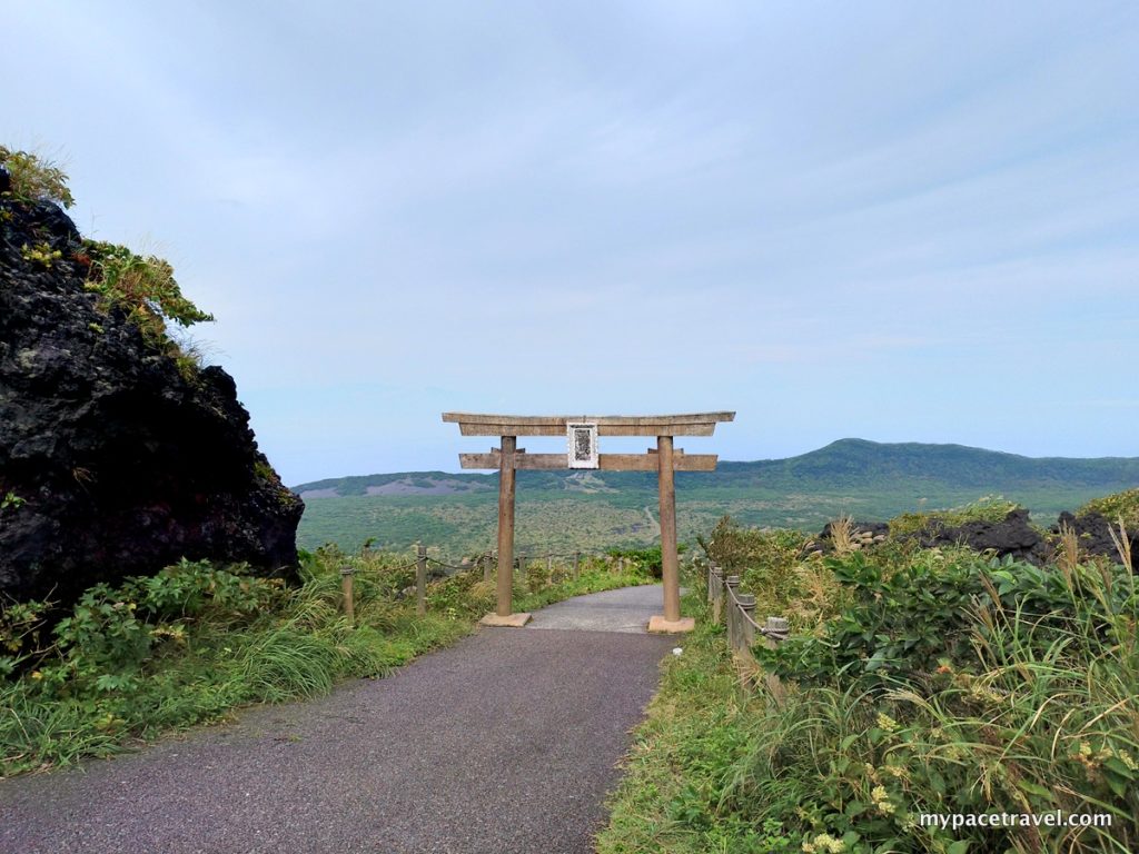 在三原山頂上還有一所小小的三原神社,這個小小的鳥居也實在太搶眼了,而由鳥居向下走,便可以見到同樣小小的神社。