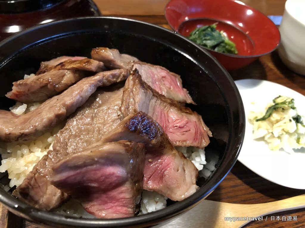 今次由布院散步選擇了來這間「湯之岳庵」吃午飯,就在金鱗湖旁邊,是由布院著名高級溫泉宿「龜之井別莊」的直營料理店,以供應中至高價料理為主,不過午市的價格其實還可以,而且店內環境舒適優雅,相對觀光大街的其他餐廳也沒有那麼多人,想輕鬆地吃個午飯,這裡是不錯的選擇。店內最有名的是鰻魚飯,不過數量有限,我今次便吃不到了,但這裡的牛肉料理也是OK的,如我吃的這個2,500円的「炭火焼きビフテキ丼」,國產黑毛和牛肉量多又鮮嫩多汁,2,500円是有點貴,但是物有所值的。另外朋友選的蕎麥麵定食也是不錯,而且還便宜一點只要1,800円啦。