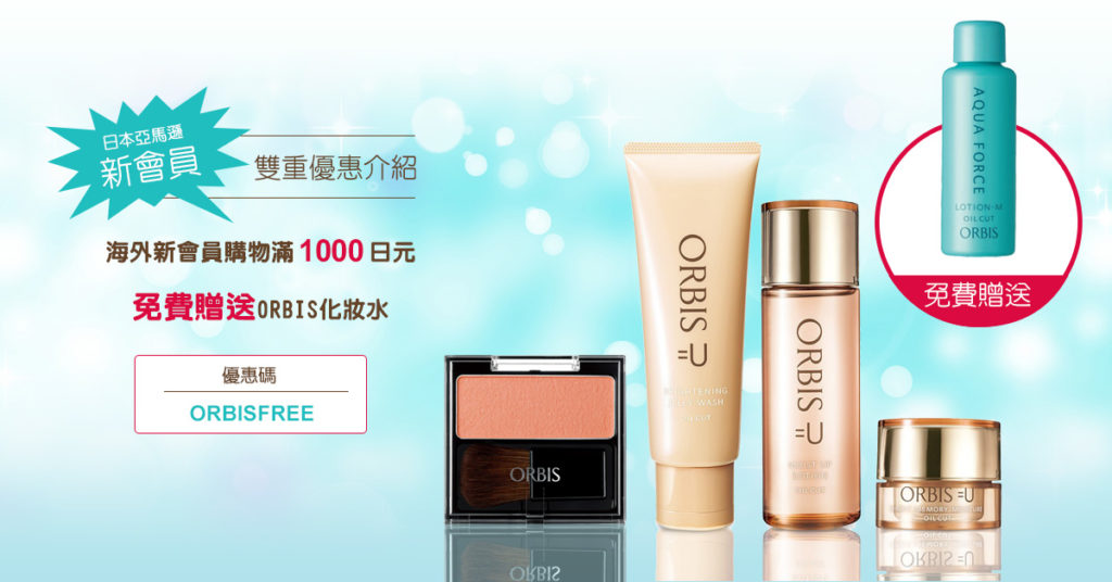 如何領取優惠:在Amazon.co.jp首次使用海外直送(Amazon Global)單筆購物滿1,000日元便符合資格。只需要點擊「活動主頁」中的「ORBIS化妝水圖片」,再把商品放入購物