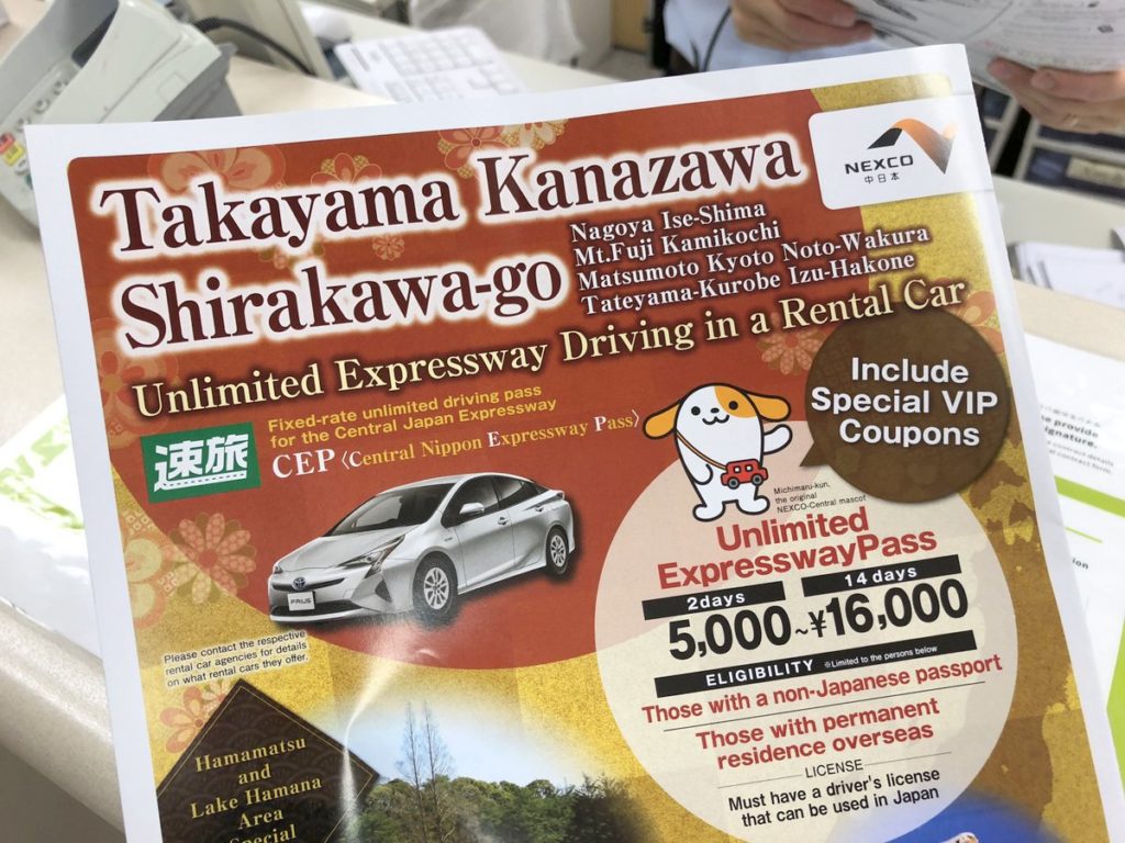 今次租的SIENTA有提供ETC高速公路付費系統,TOYOTA RENT A CAR也有提供ETC卡租用服務,收費是以每次租車計,每次324円,當然,ETC的使用料是會在還車時同時計算啦。由於今次我只到岐阜而且也是用太多高速公路,所以只租了ETC卡而沒有使用各款高速公路PASS,不過大家有興趣的話也可以參考一下,按這裡。