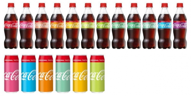 今次的夏限定彩色系列分為3種,紅色可口可樂瓶裝版(500ml PET、1L PET、1.5L PET、2L PET)共有12款顏色推出,黑色可口可樂ZERO(500ml PET、1L PET、1.5L PET、2L PET)亦有12款相同顏色,另外就是紅色可口可樂罐裝350ml缶、500ml缶則有6種顏色。