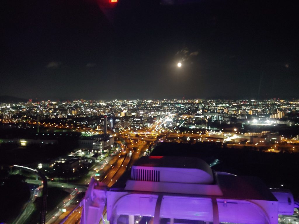 在摩天輪上主要可以看到南方的大阪市內風景、北側的万博記念公園風景、還有東側的奈良風景等,看夜景就是最浪漫的啦,但想看風景看得清楚一點,建議可在黃昏時乘坐。
