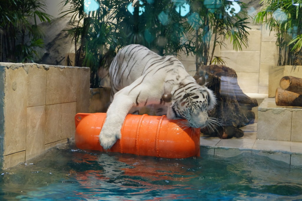 白老虎是全館的明星,不少客人前來也是為了一睹白老虎的英姿喔。