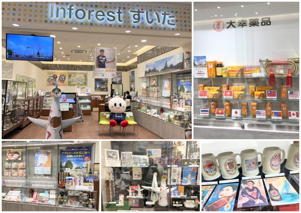 由EXOCITY所在的吹田市役所開設的店鋪,觀光所可索取免費觀光資料,店內不單有介紹本地產業(朝日啤酒吹田工場、大幸藥品的正露丸等是代表)、本地觀光等的專區外,也有售賣大阪世博名物太陽之塔主題精品及朝日啤酒精品如啤酒杯等,全個商場內就只有這裡有售太陽之塔主題精品啦。