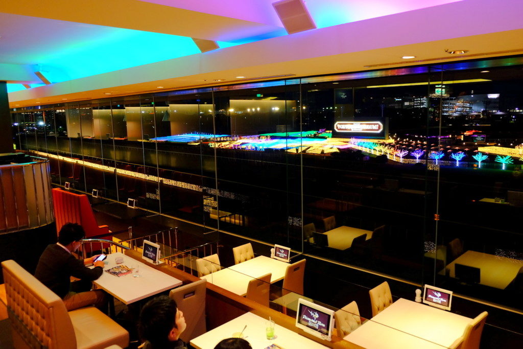 Diamond Turn Annex :在看台內4樓的「Diamond Turn Annex」lounge, 在這裡可以拍到一個壯觀的全景 ,這個本來是在賽事日開放的lounge,而在燈飾活動日的晚上,這裡亦開放予大眾入場,而且更提供lounge內非酒精飲品任飲放題喔。入場券連「Diamond Turn Annex」入場的套票價格是2,800円