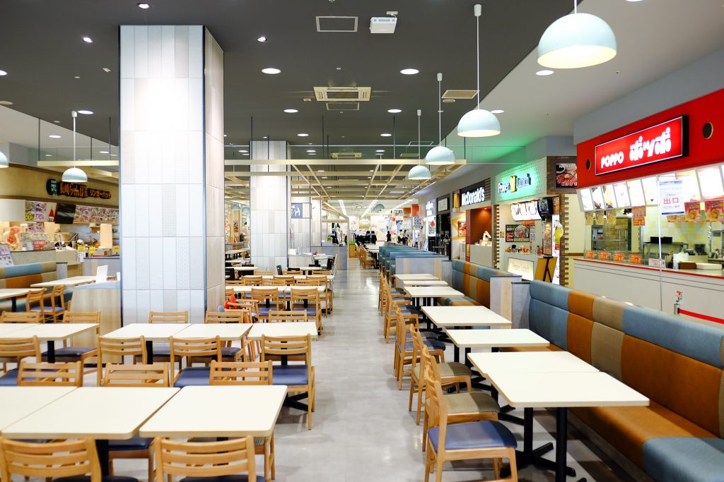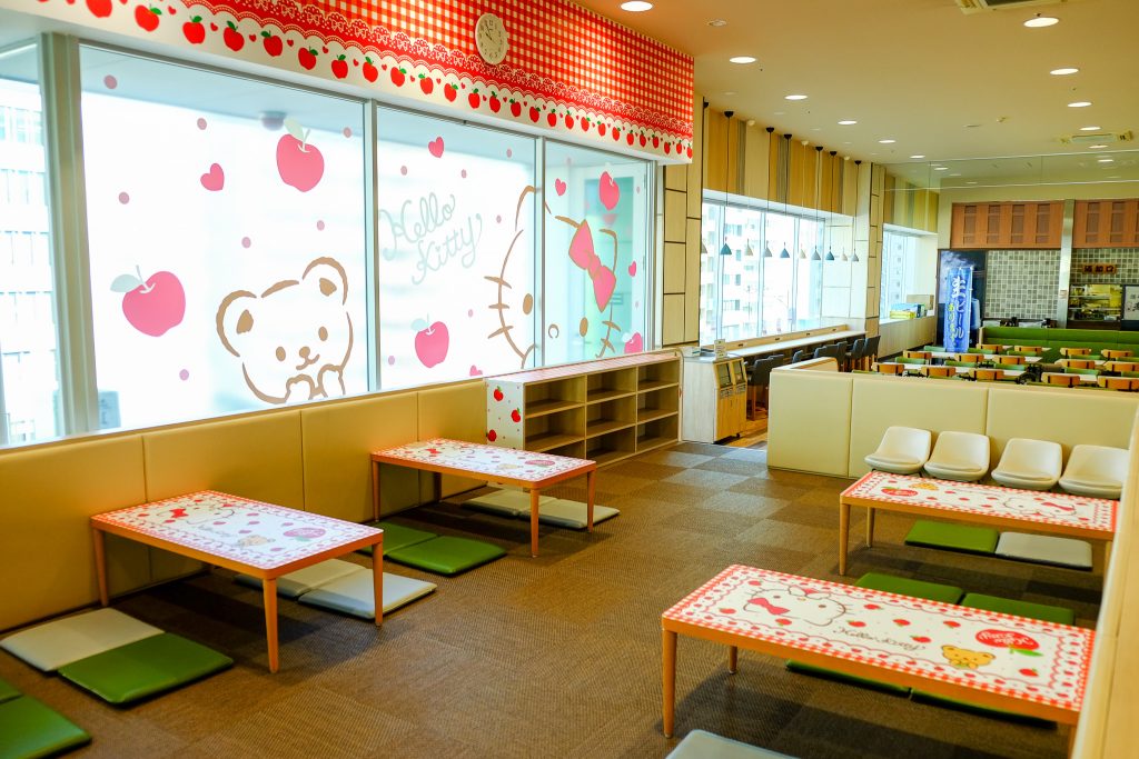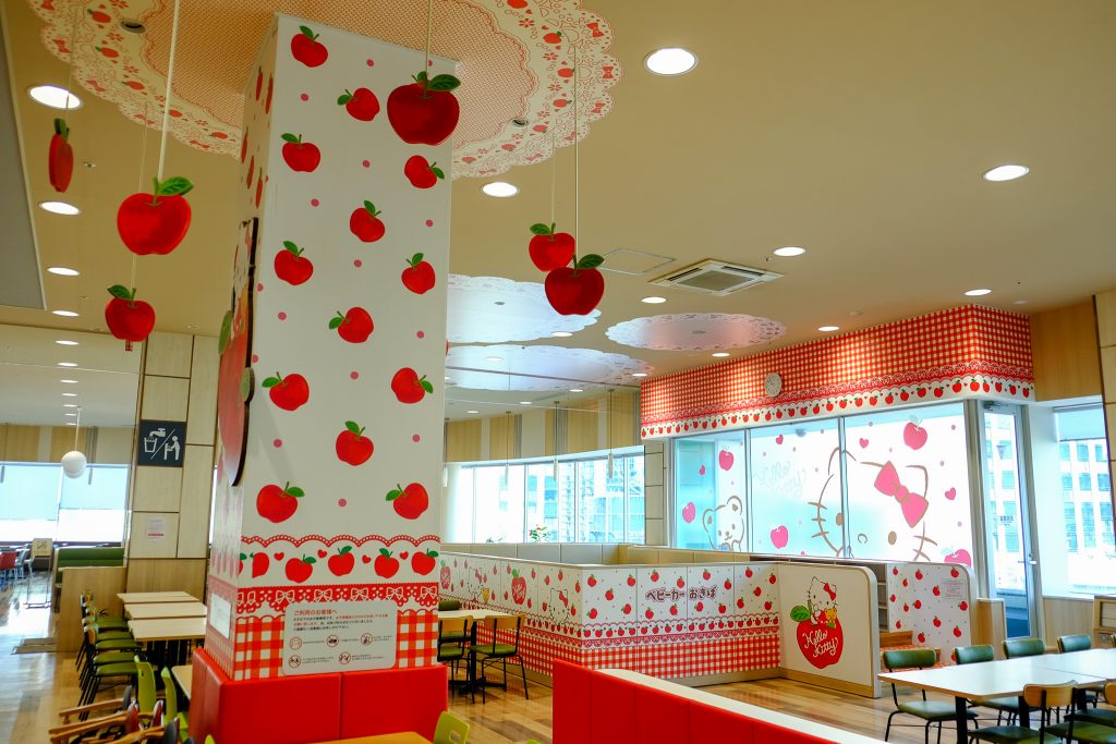 位於3樓的美食廣場是自助形式,共有9間餐廳,包括有麥當勞、 pepper lunch及長崎ちゃんぽん拉麵店等,座位數目很多所以就算是高峰時間都不難找到位置的,而特別之處是這裡設有HELLO KITTY專區,全東京就只有這間分店有的喔。