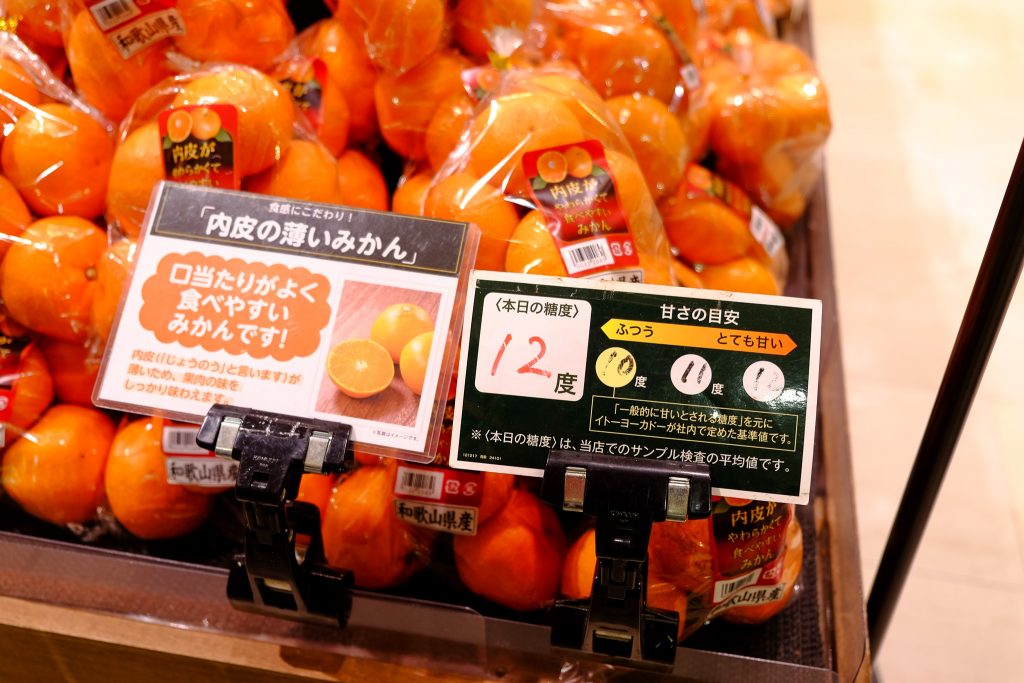 這些都是由 「伊藤洋華堂」 直接採購的食材,重點是安全、安心;美味,所有食材都包含以下這5個原則才能成為 「顔が見える食品。」, 商品才能在店鋪內出售: 1)支持日本的農業、畜產業、漁業發展。2)優質食品產自優良的生態環境。3)重視生產者的心意。4)拉近生產者們與消費者的距離。5)追求更加安心、安全的商品。