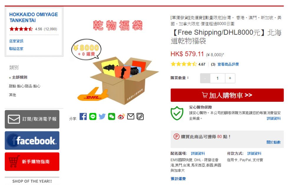 而重點是,包DHL直送香港、澳門 及 台灣,平常單是空郵費用已要數千円,即是變相再慳多一大截!