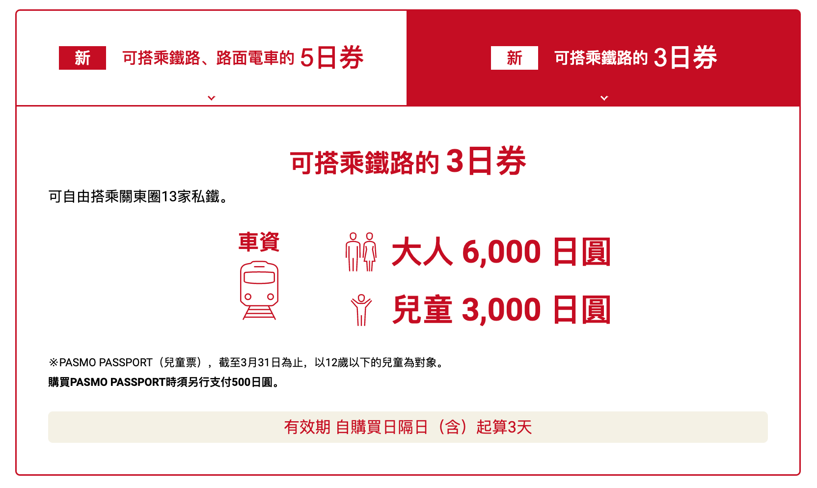 而3天版則售6000円,每天平均要2000円,這個價位來說,也是只有用來前往長距離移動如日光、三浦海岸等地來回都心才化算。