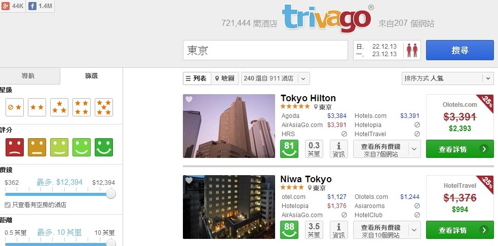 (好用)TRIVAGO酒店格價系統,可即時在207個訂房網上找到最佳價格住宿!