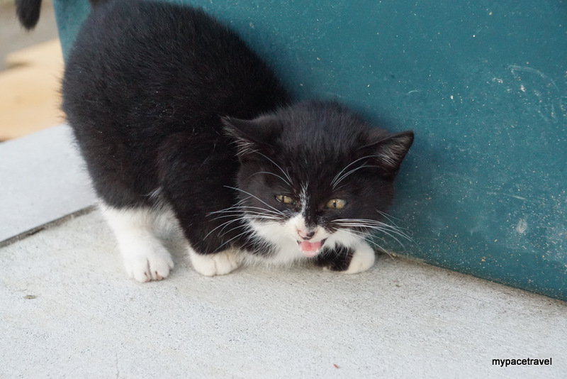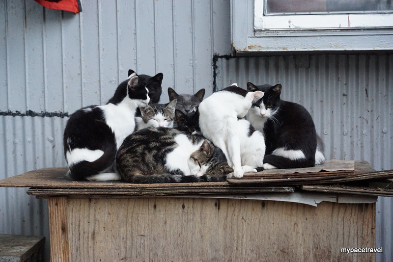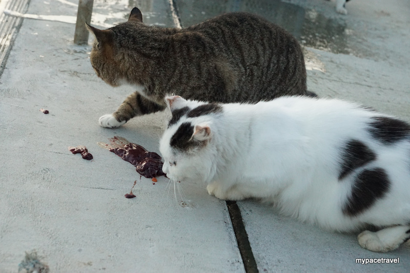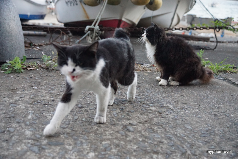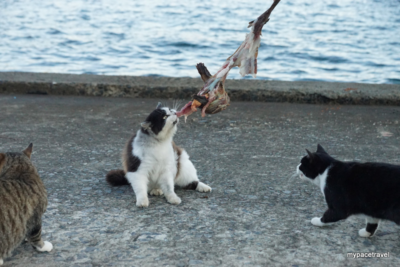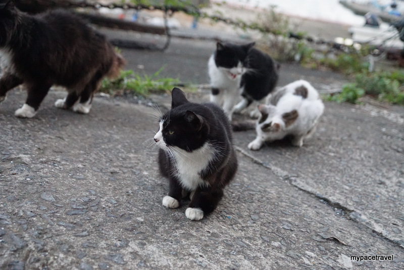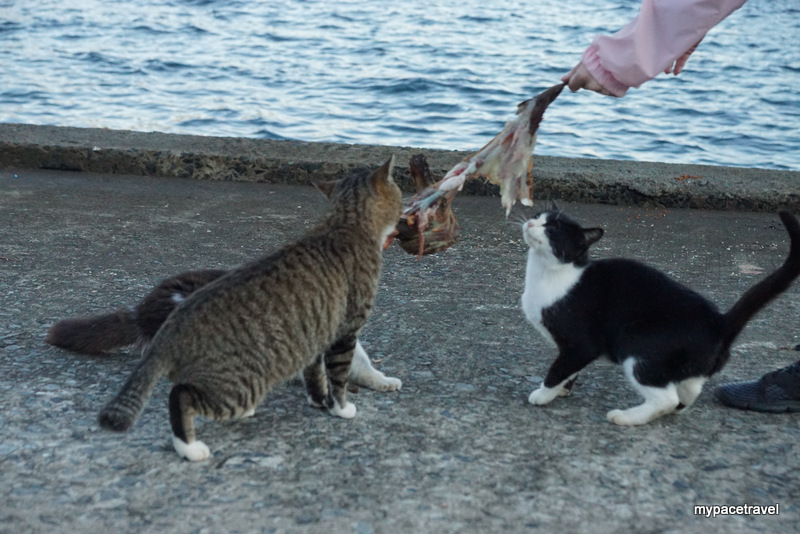貓貓主要都係集中在大泊港碼頭附近,早上係貓貓出沒的高峯期,因為沒有那麼熱,牠們都會出來散步跟找食物吃啦,而漁夫們都會有時候給牠們吃吃新鮮海產呢。而島上其實有專人餵食,所以不鼓勵旅客直接給牠們餵貓糧,島上有多個小型貓箱,如果有帶同貓糧入島的話,可以將東西放進箱內,有關專人便會收集起來集中處理啦。