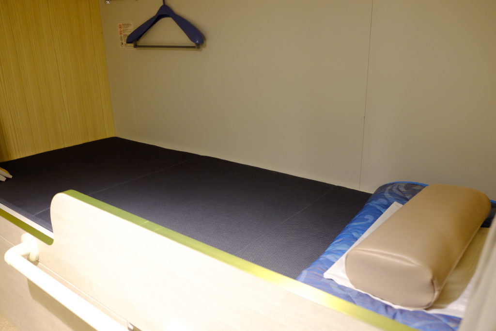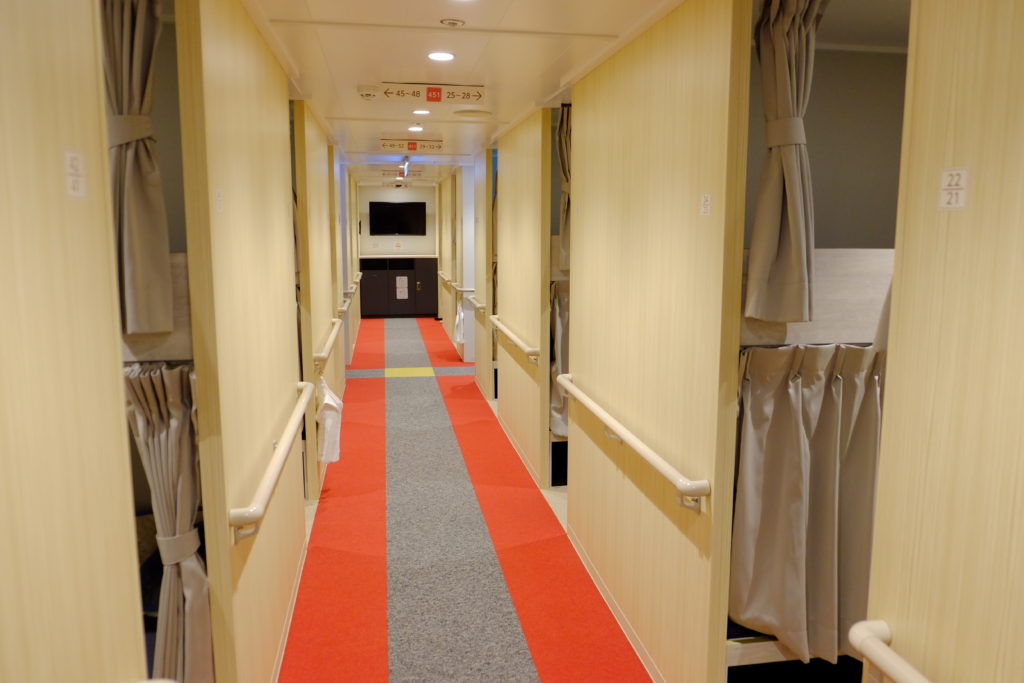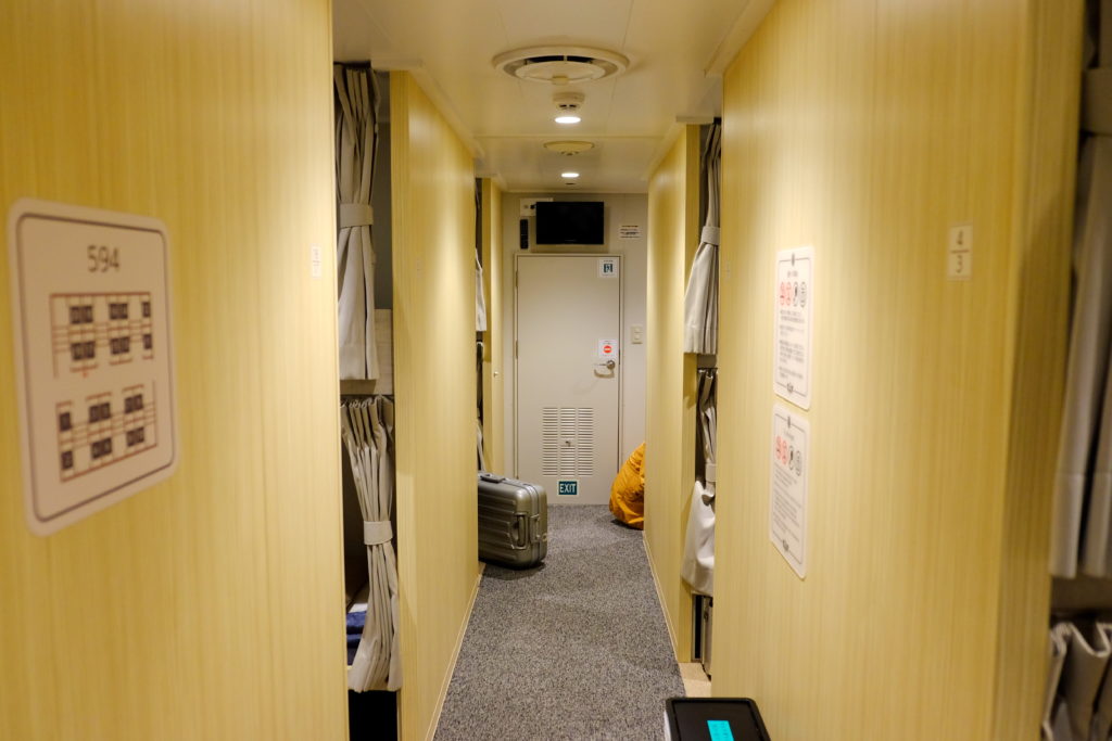船上以不同的價位劃分不同的艙等,今次我住的就是最基本的2等寢台,簡單來說就是跟膠囊酒店相同的設計,旅客都有一個屬於自己的小空間,把布簾拉上後,也是有一定的私隱及隔音效果的,而且對我來說,這個小空間有足夠伸腳及轉身了( 我身高1.8米),唯一的是,提供的枕頭真的不太好睡啊,最後我是將我的背包當作枕頭才成。