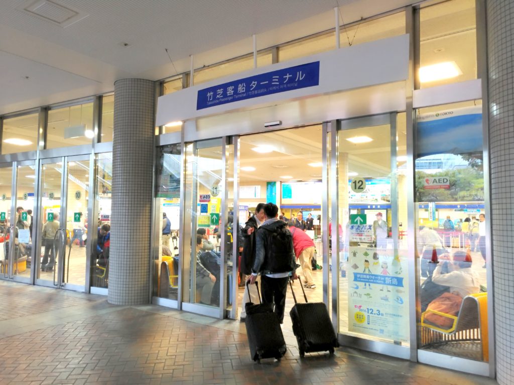 竹芝碼頭是東京都前往鄰近外島的主要碼頭,碼頭就在百合號竹芝駅旁,如果是坐JR的話,距離浜松町駅也大概只是6-7分鐘的步程,是方便的,而碼頭內也有CAFE及自動售賣機等設施,等上船的時候也可以先小休一下,但便利店的話就要去到碼頭對面的那間FAMILYMART了。