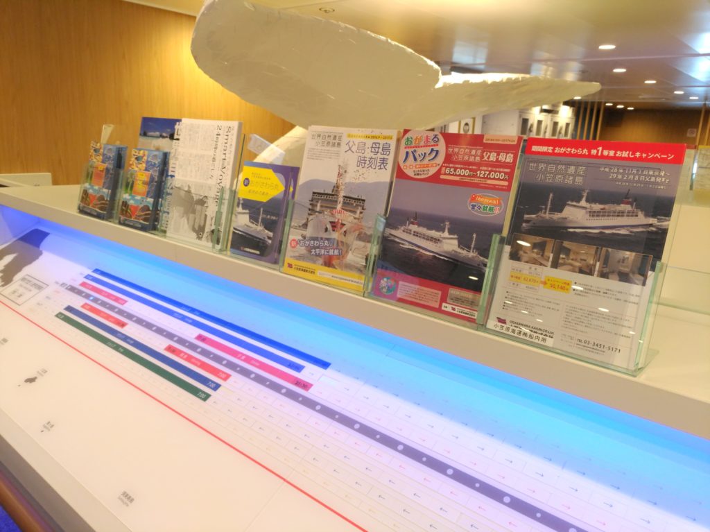 在東京出發前往小笠原諸島的一段,船上是會有小笠原諸島的職員,提供當地的觀光資訊,另外在船上亦有小量小笠原諸島相關的資訊供參考。