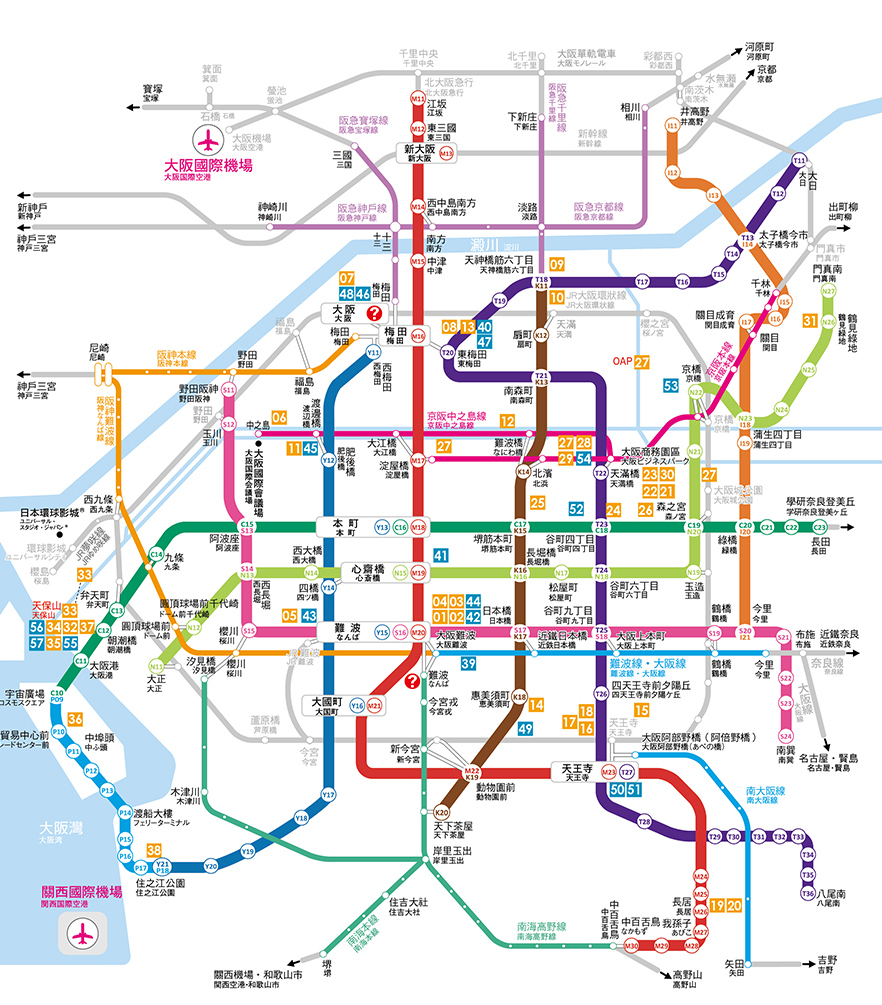 先說說交通方面,兩款PASS的使用範圍是相同的,包括大阪地下鐵連NEW TRAM各線,以下私鐵:阪急、南海、近鐵、京阪及阪神的大阪府內路線,詳細請向下圖的路線圖。