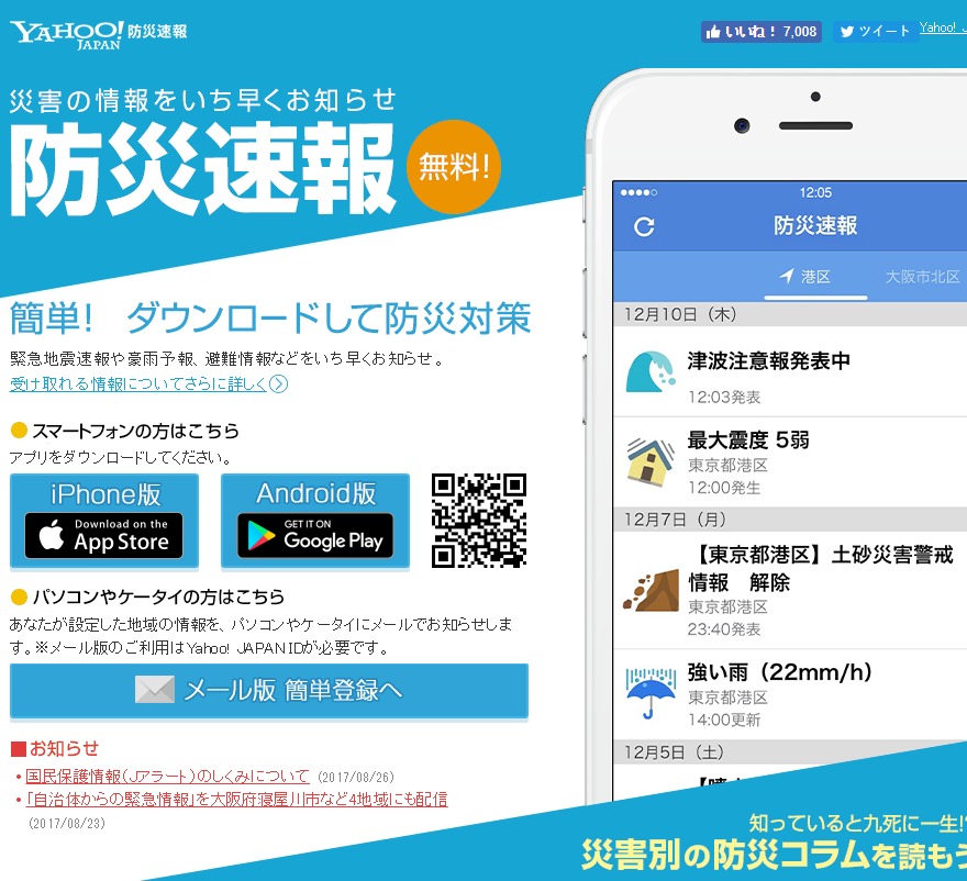1)防患於未然,大家在前往日本旅行之前,可以在手機先安裝這個「YAHOO日本防災速報」,除了可以自選地區提供天然災害,如地震及台風等的即時避難情報外,現時已與日本的軍事防衛避難系統「J-ALERT」連線,同時會提供包括飛彈發射等的即時避難情報,功能是坊間同類APP中最全面的。