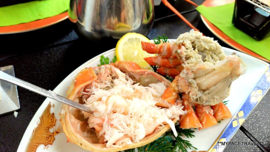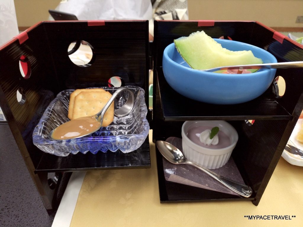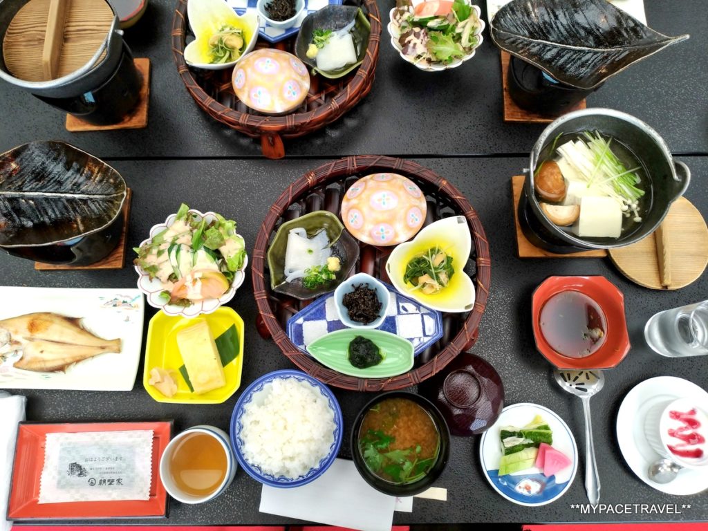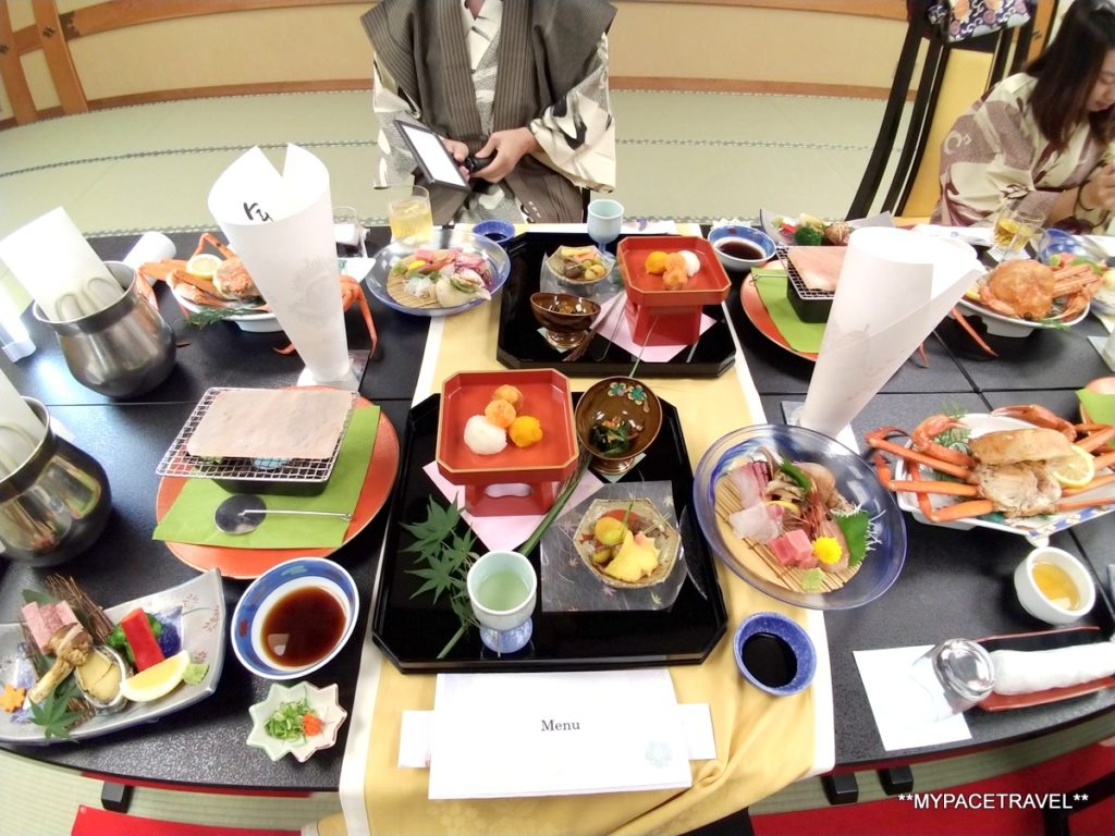 夕食不單是豐富,而且真的不時不吃,山珍海錯當然不能少,例如但馬牛以及鮑魚等海鮮等,部分菜蔬更是由自家農場出產,而我們去的時候正值蟹季,所以旅館也不囉嗦,全隻紅楚蟹直接上桌,一人一隻超豪氣的說,實在是超滿足,連甜品也是特別製作的,很有心思!有人可能會說吃蟹很麻煩,但來到這裡就絕對不會麻煩,因為這裡的員工會為客人即席拆蟹肉,而且非常快手又非常熟手,可能是旅館另一獨特的風景呢(看片在此)。而料理的菜單等都是由社長朝野先生親自手寫(再複印)的,又是另一個可以見到旅館細心之處。而朝食也是同樣用心,兩個字:滿足。