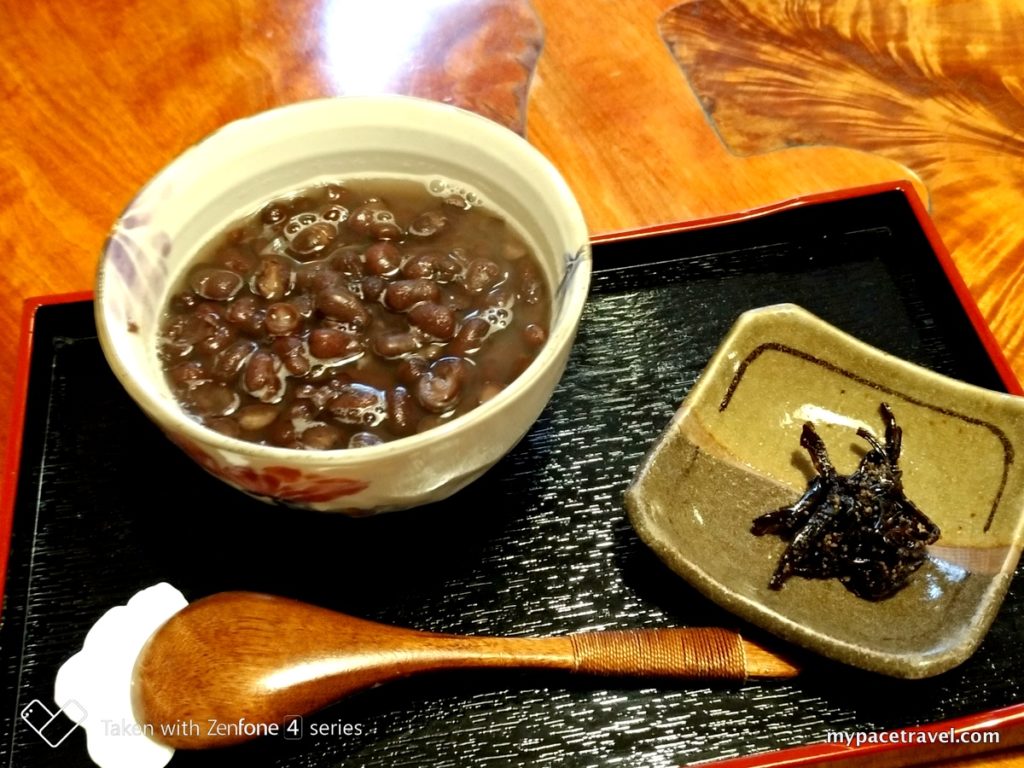 而客人還可以再添加更多的皿そば,官兵衛這裡的是「出石皿そば」800円,而追加則是每皿120円,而當吃到20皿就可以得到記念品一份,30皿的話更可以得到木造記念牌一個,大家有興趣來挑戰一下嗎?而除「出石皿そば」外,官兵衛也有其他蕎麥麵供應,而這裡的紅豆湯也是很有名的啊。