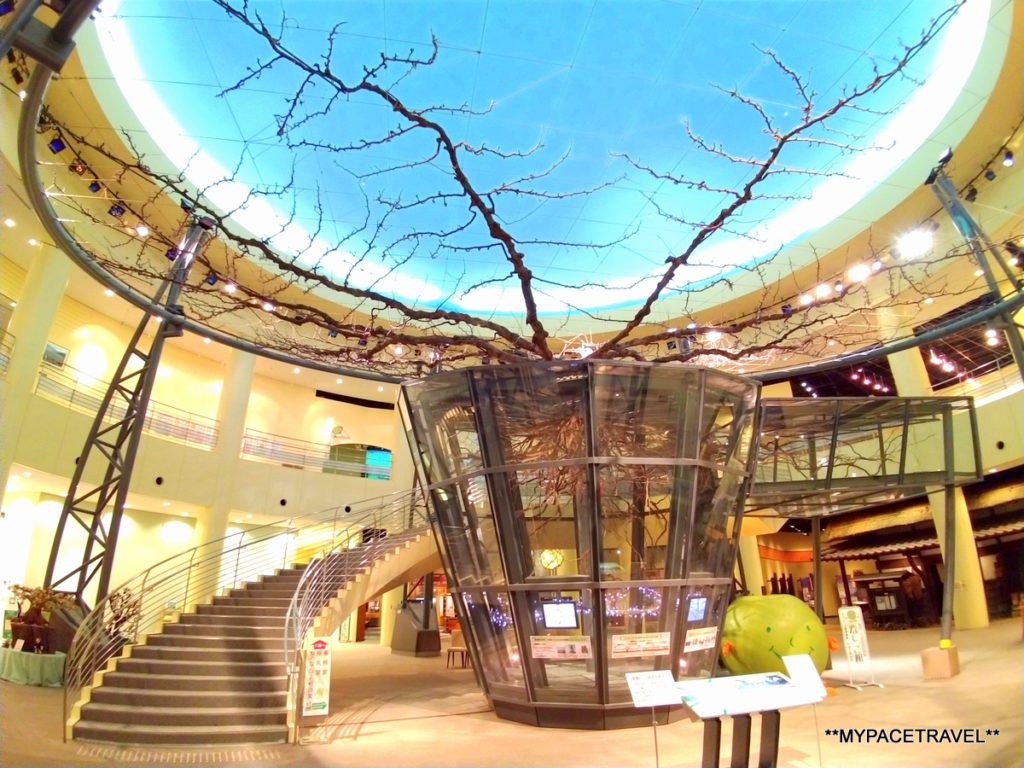 這間「鳥取二十世紀梨記念館」開業於2001年,是當時及現時唯一的日本梨主題館,全館樓高2層,基本上都是九成展品都與日本梨以及全世界各地的梨子等資料展示為主,正中央就是記念館的標記,樹枝圓周達20米的二十世紀梨巨木標本,而各不同的展廳就圍著這巨木而設。