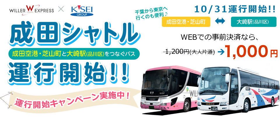 繼「The Access成田」及「Tokyo Shuttle」後,再有另一平價成田機場巴士即將登場啦。這是由Willer及京成兩間公司共同營運的「成田シャトル(Narita Shuttle)」,主要往來成田空港及大崎駅之間,事前網上預約的話,單程車費只要1,000円,便宜。