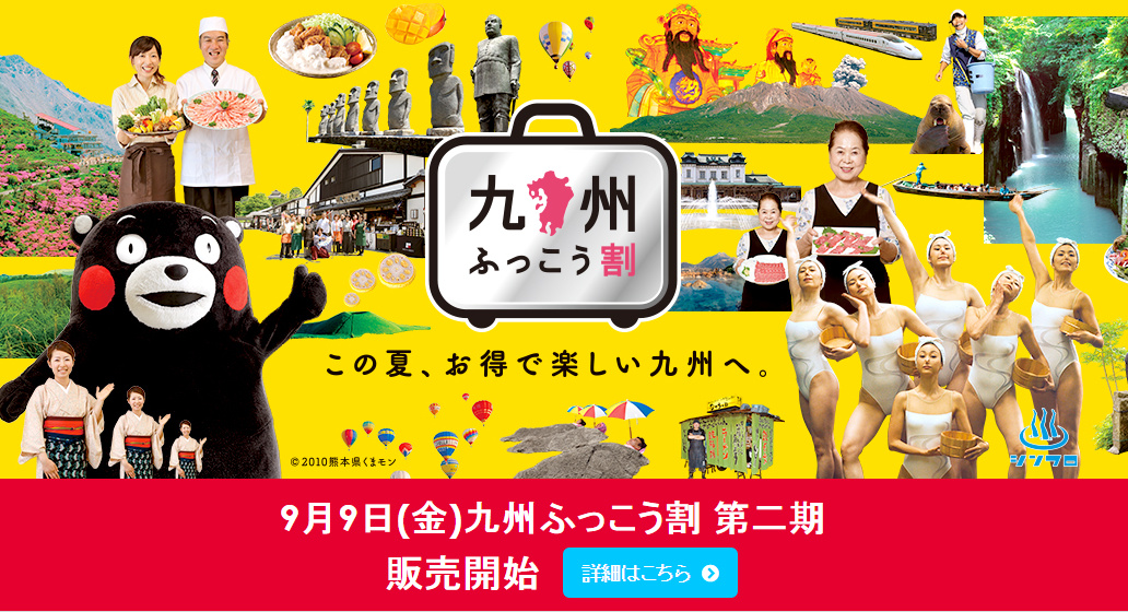 (最大優惠50%OFF)第二期住宿優惠「九州ふっこう割」來了,9月9日開始接受申請,跟第1彈相同,最高優惠可享原價的半價喔。